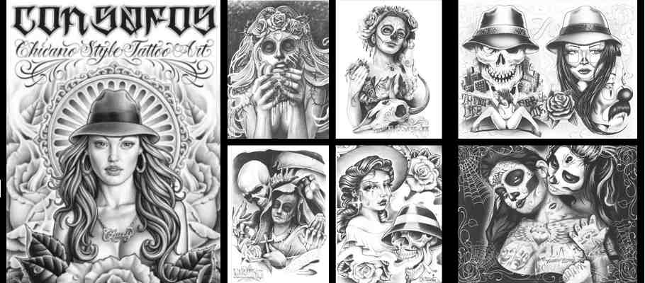 Le livre « Con Safos » nous offre 120 planches en noir et blanc réalisées par pas moins de 55 tatoueurs parmi lesquels ont retrouve Boog, Jose Lopez, Steve Soto, Chuey Quintanar, Carlos Torres ou encore Tim Hendricks et Mike Giant, qui nous livrent leurs interprétations du style chicano au travers de leurs meilleures œuvres.