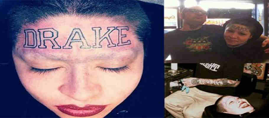 En hommage à son rappeur favori, le canadien Drake, une fan s’est fait tatouer son prénom sur le front.