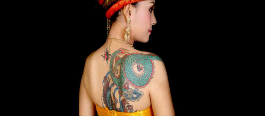 Virginie Guinard, 26 ans, titulaire d’un BTS de management, blonde adepte des arts martiaux, déjà porteuse de deux petits tattoos, a la moitié du dos couverte d’une geisha tenant un katana (sabre) et des fleurs de cerisier : « Il a fallu quatre séances de quatre ou cinq heures. La douleur est très intense sur le moment, mais on oublie vite. Je l’ai fait pour moi. Mes parents ont eu du mal au début. Je pense faire d’autres tatouages, eux aussi invisibles si je suis habillée. »