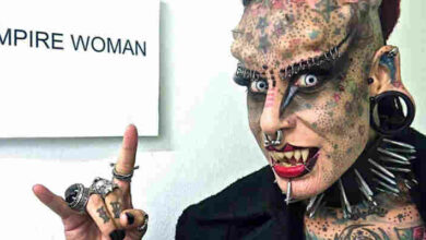 Dans le genre tattoo extrême, voici « la femme vampire », c’est ainsi que se fait appeler Maria José Cristerna, originaire du Mexique. Elle s’est fait tailler les dents en pointes et poser des prothèses dentaire façon vampire, des cornes en titane implantées sur le crâne et s’est fait encrer…