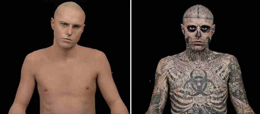 Rick Genest alias Zombie boy est un homme entièrement recouvert de tatouages, donnant ainsi l’illusion d’un mort vivant.