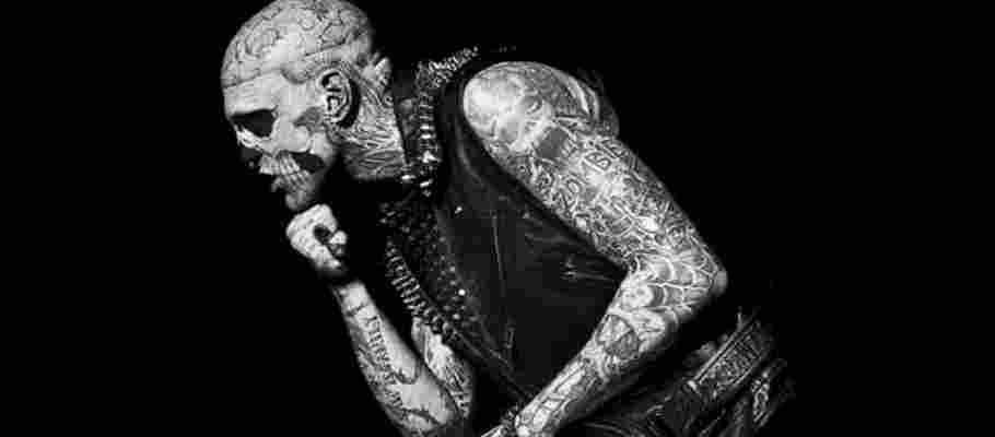 Il est plus connu sous le nom de « l’homme zombie » pour s’être fait tatouer comme un cadavre sur presque tout le corps, y compris la tête.